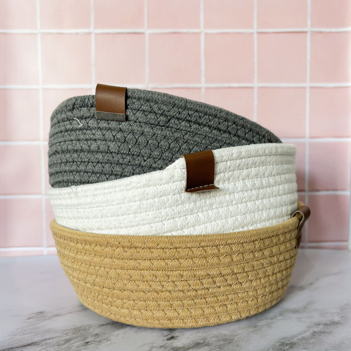 Canasto tejido 28 cm por 10 cm de alto