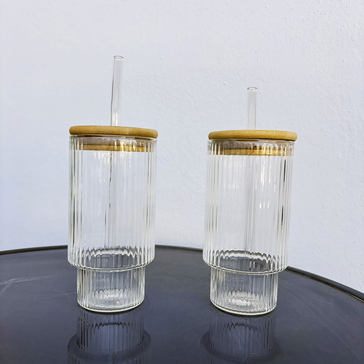 Vaso de vidrio de 500ml. Incluye tapa de bamboo y sorbete