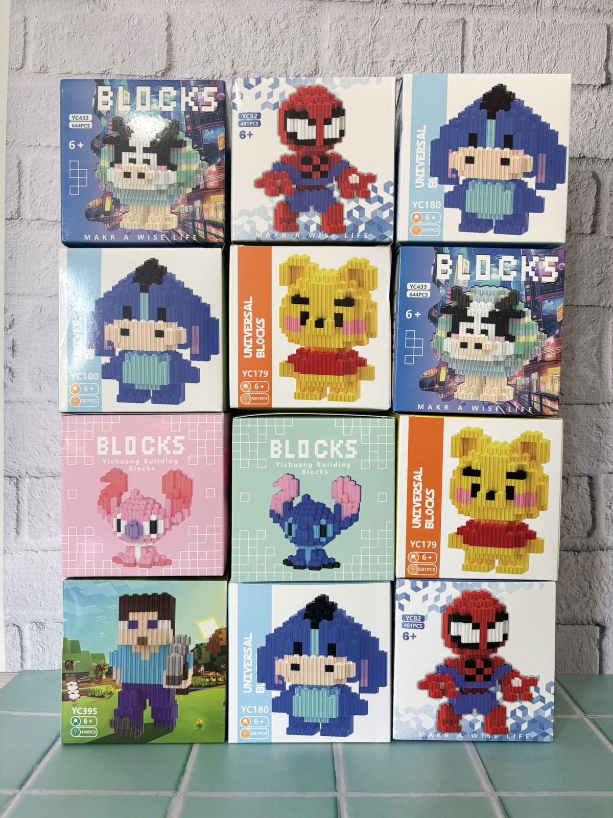 Set de mini bloques de personajes para armar y coleccionar.