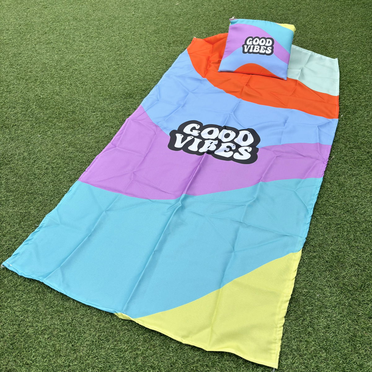 Manta fabricada en tela tropical, incluye neceser. El neceser tiene tela aislante e impermeable en su interior.