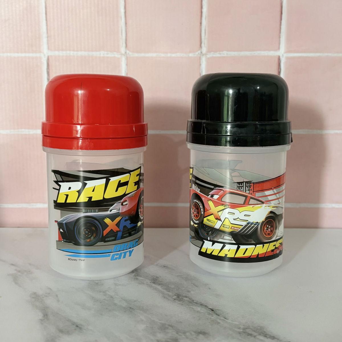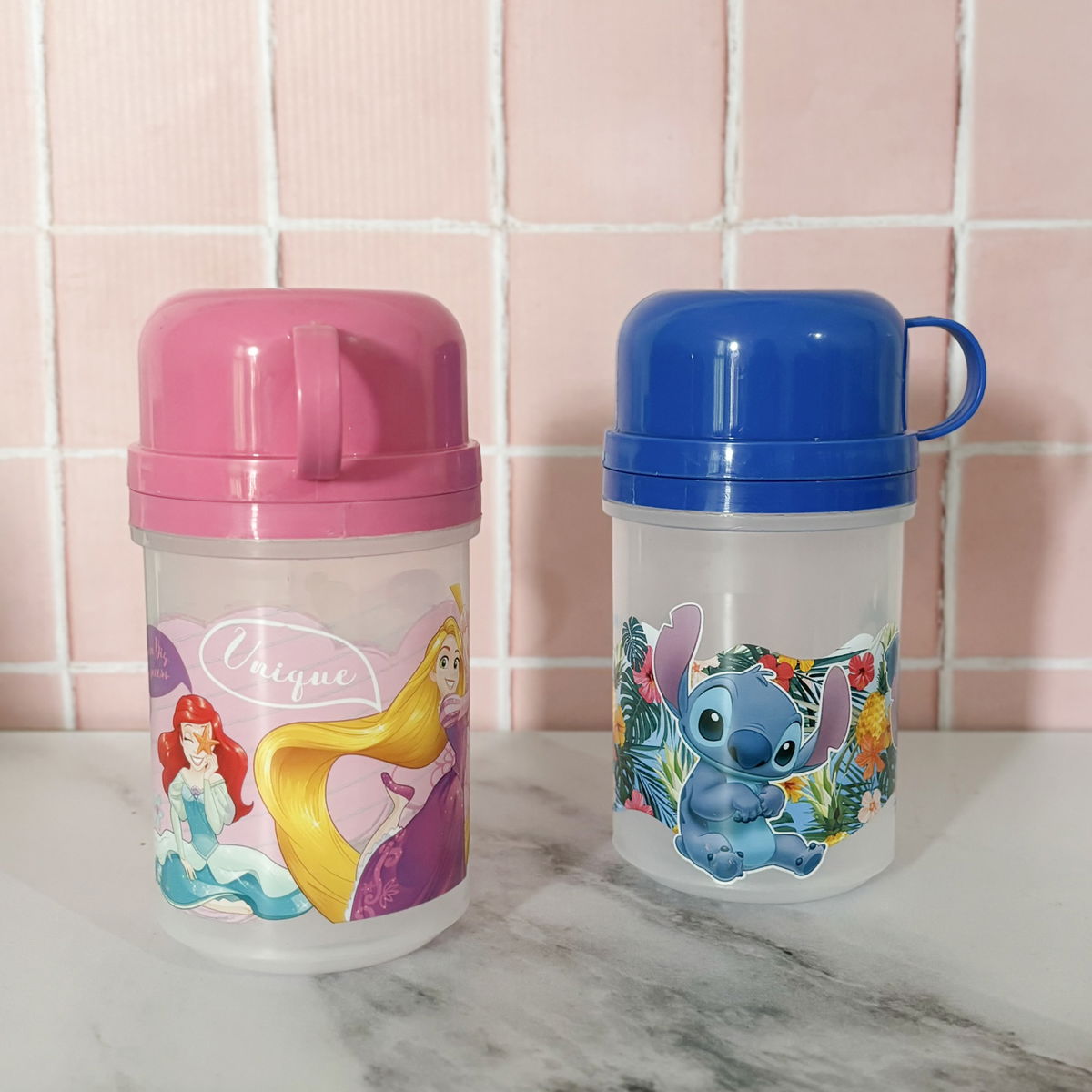 Cantimplora con tapa a rosca + taza a presiónCapacidad: 400 ccMaterial: PlasticoMedidas: 15 cm de alto x 7 cm de diámetro