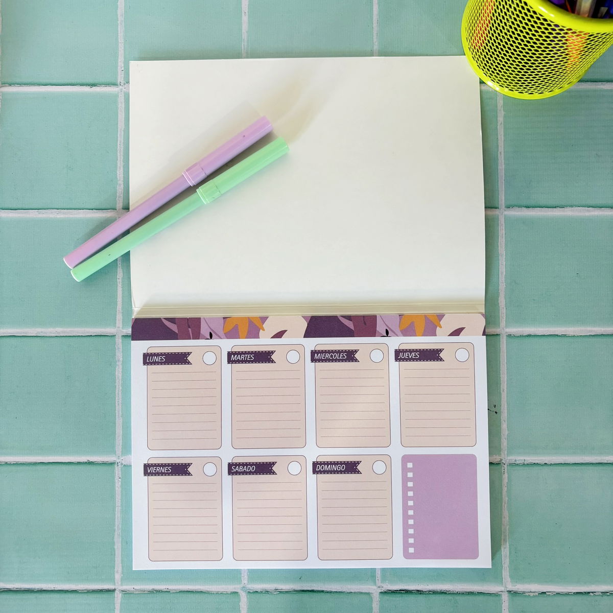 Incluye 50 hojas semanales, tamaño A5
